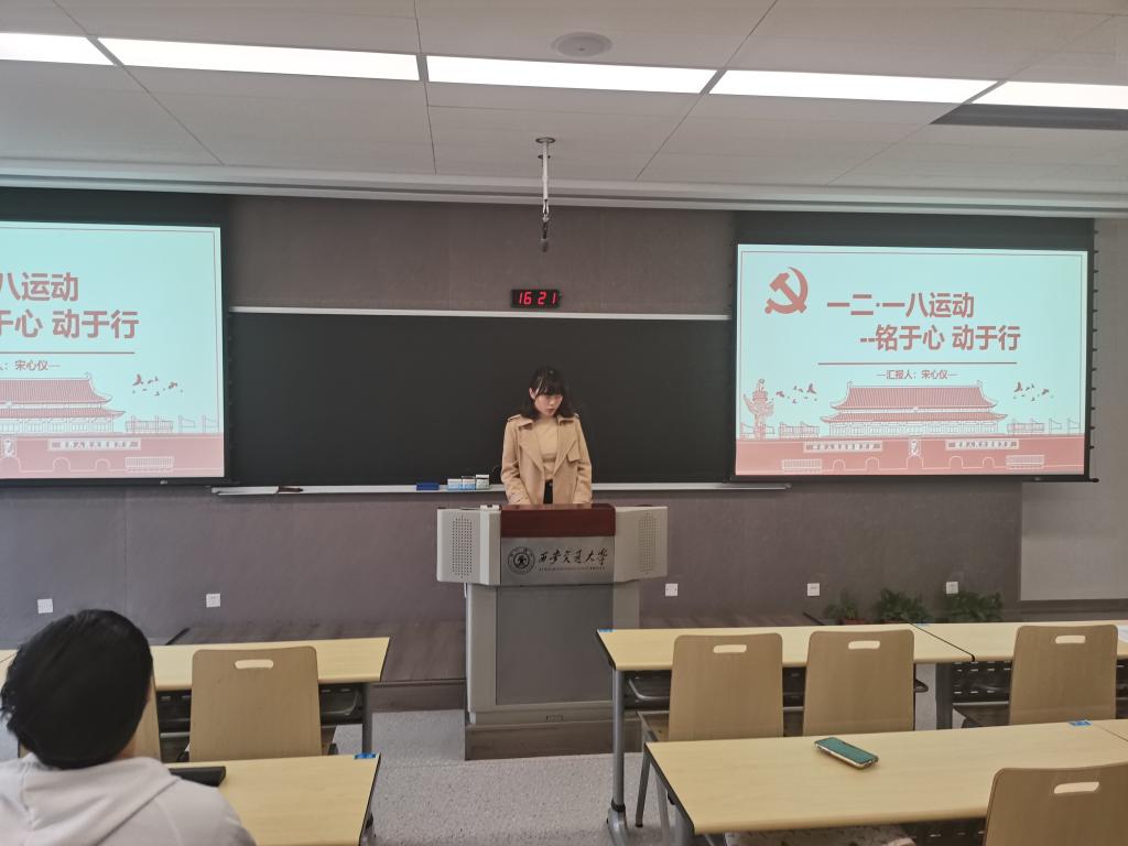 2021年4月8日下午,值125年校庆暨迁校65周年之际,S0002党支部组织班级同学在2-6004教室进行了学“四史”党史领学活动——“一二·九”运动历史的学习。