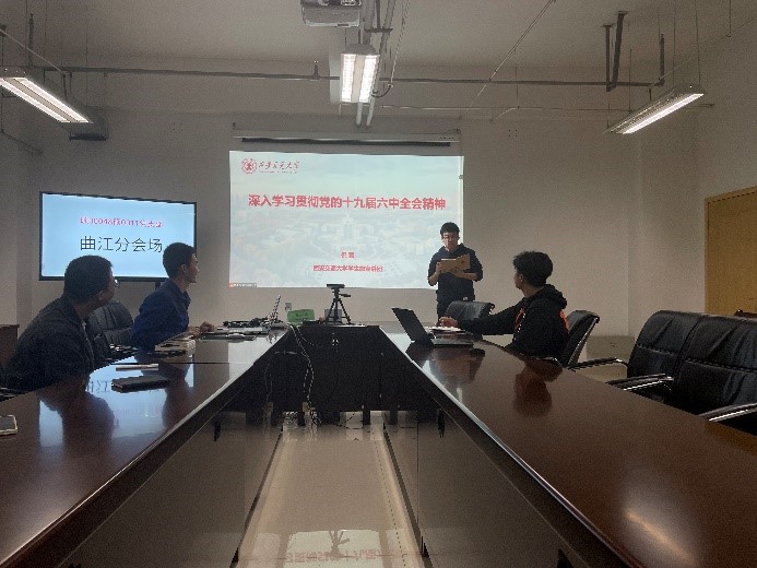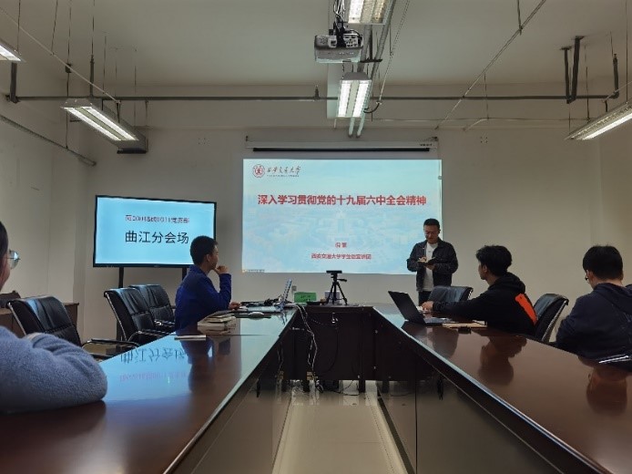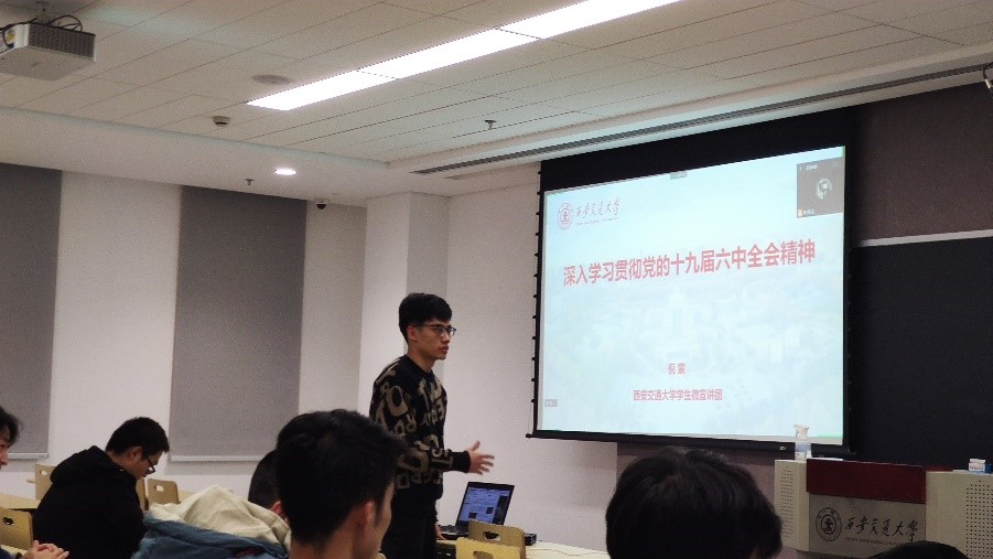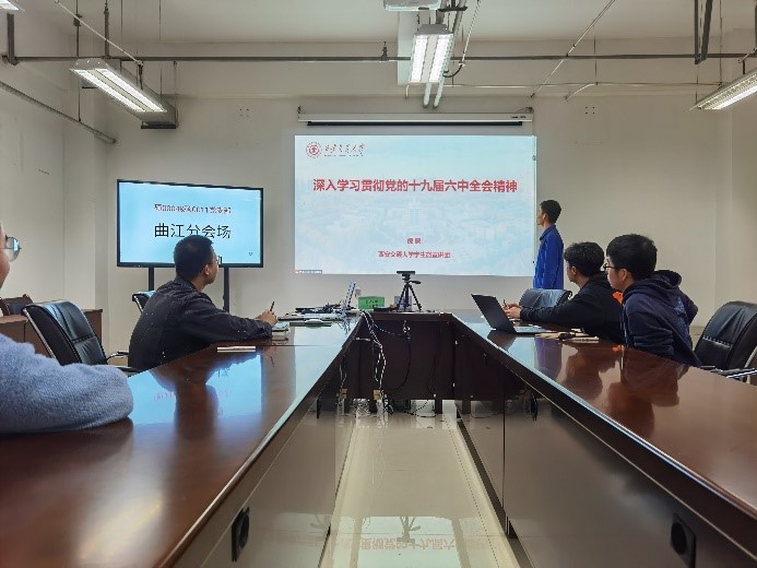 为深入学习贯彻党的十九届六中全会精神,准确领会《决议》的深刻内涵、创新观点、核心要义,yl6809永利官网硕0004党支部与硕0011党支部邀请西安交通大学学生微宣讲团团长倪蒙开展党的十九届六中全会精神宣讲活动。本次宣讲活动设创新港主会场和曲江分会场。