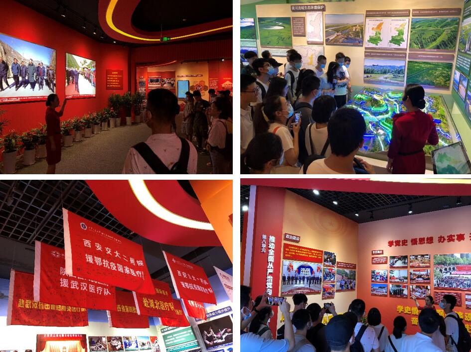 第二展厅全面展示了新时代陕西省经济高质量发展、特色现代农业建设、内陆改革开放、生态文明建设、文化建设、民生保障、脱贫攻坚战、全面从严治党所取得的伟大成就。习近平总书记两次来陕考察,分别作出了追赶超越的科学定位,提出了五个扎实、五项要求,为陕西发展寄予厚望。今年3月,作为全省创新驱动发展总平台的“秦创原”在西安启动,“秦创原”以创新驱动高质量发展,要建设成辐射带动西部地区乃至全国和“一带一路”沿线高质量发展的市场化、共享式、开放型、综合性科技创新大平台,作为机械学子,大家对科技创新、政产学研深度融合产生了极大的兴趣。脱贫攻坚,负重前行;白衣执甲,逆行出征。我们永远不能忘记在脱贫攻坚战和抗击新冠肺炎疫情中牺牲的英雄们!