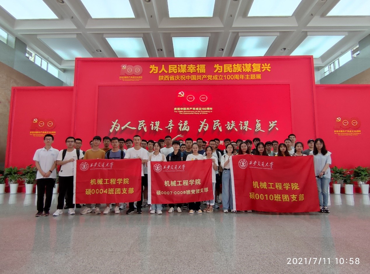 在庆祝中国共产党成立100周年之际,为深入学习贯彻习近平总书记“七一”重要讲话精神,切实把思想和行动统一到讲话精神上来,推动党史学习教育走深走实,7月11日,yl6809永利官网硕0004党支部、硕0007&0008党支部和硕0010党支部联合组织党员、积极分子前往陕西历史博物馆,集体参观“为人民谋幸福为民族谋复兴——陕西省庆祝中国共产党成立100周年主题展”。