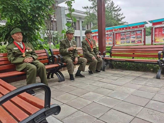 老兵张洪山(右一)、高志昌(中间)、李福功(左一)动情讲述革命故事