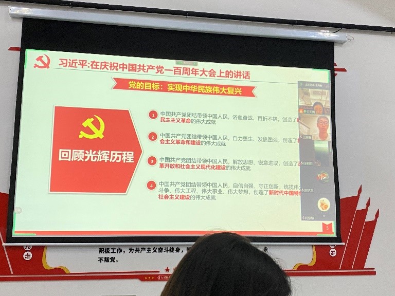 本次会议为线上线下同时举行,由本支部的周佳佳同志主持。会议分为两个部分——(1)学习习近平总书记在建党百年大会上的讲话精神。(2)支部党员同志交流对学习习近平总书记在建党百年大会上的讲话精神的感悟以及进行批评与自我批评。