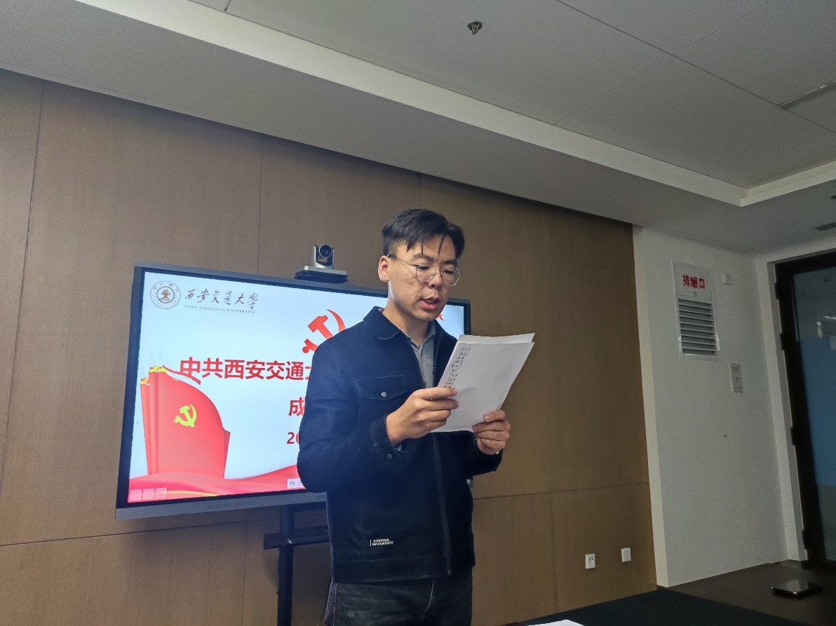 最后,中国共产党西安交通大学yl6809永利官网硕1002支部成立大会在雄壮的《国际歌》歌声中胜利闭幕。