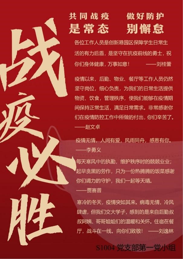 没有一个冬天不会过去,没有一个春天不会到来。我们戮力同心,终将战胜疫情。硕1004党支部向所有奋战在一线的抗疫工作人员致敬,西安加油!战“疫”必胜!
