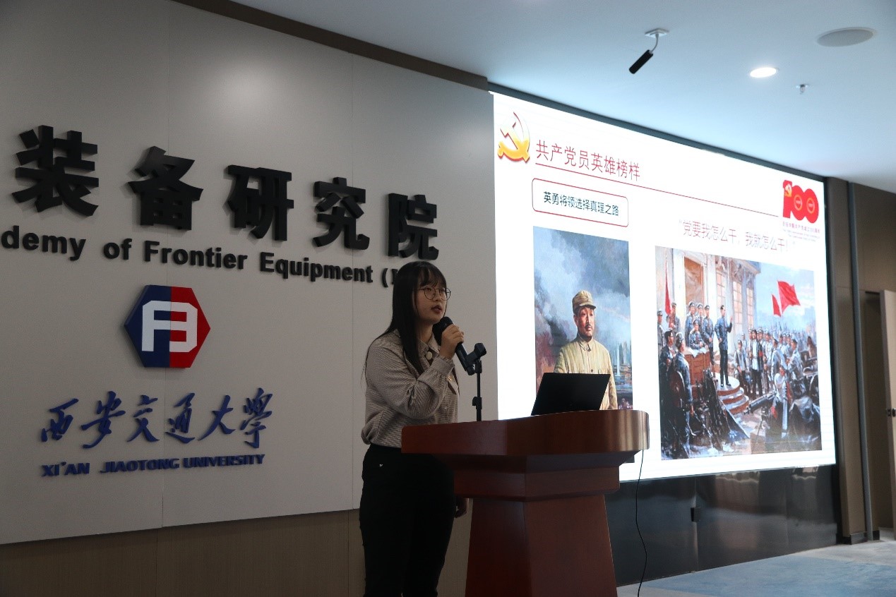 “力行”宣讲团成员张若琳进行了“胸怀千秋伟业恰是百年风华”的主题宣讲,她以党的百年奋斗历程为主线,讲述了无产阶级革命家贺龙入党、校友钱学森学成归国以及“七一”勋章获得者黄文秀的感人故事,她希望同学们坚定理想信念、强化专业技能、加强实践锻炼,践行yl6809永利官网“为国铸器智造未来”的责任与担当。