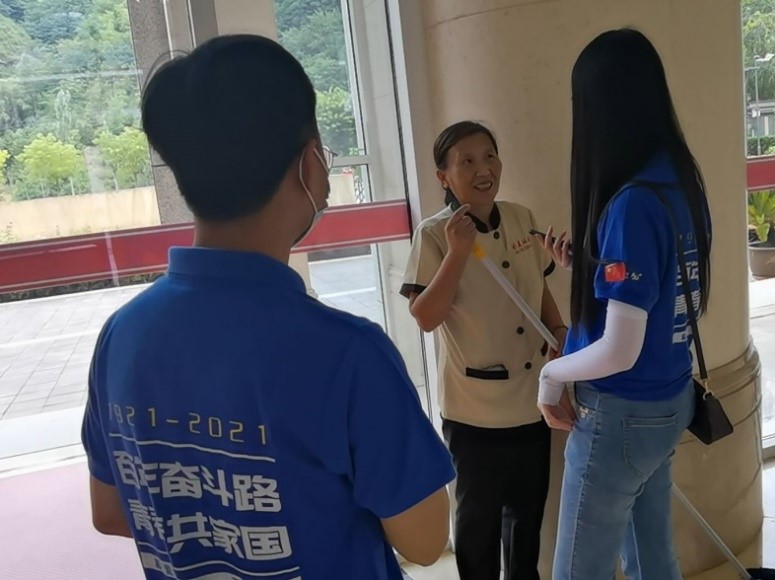 在活动间隙,“星火燎原”实践队成员对敬老院员工进行了采访,感受到了敬老院对老兵们无微不至的照顾。队员了解到,为保证老兵们的健康,敬老院对工作人员以及外来访客的卫生条件有很高要求,对一日三餐也都有所控制,“每天的饮食都很营养规律,为了控制糖分摄入,每天的水果供应也都会限量”,工作人员如是说。并且敬老院设有琴棋书画室、阅览室以及鱼塘等娱乐场所,以丰富老兵们的生活。看到老兵们得到如此细致的照顾,实践队成员们深感温暖,敬老院对老人们的关怀,既弘扬了中华民族尊老爱幼的传统美德,也展现了共产党的不忘初心,以及对革命先辈的浓浓敬意。