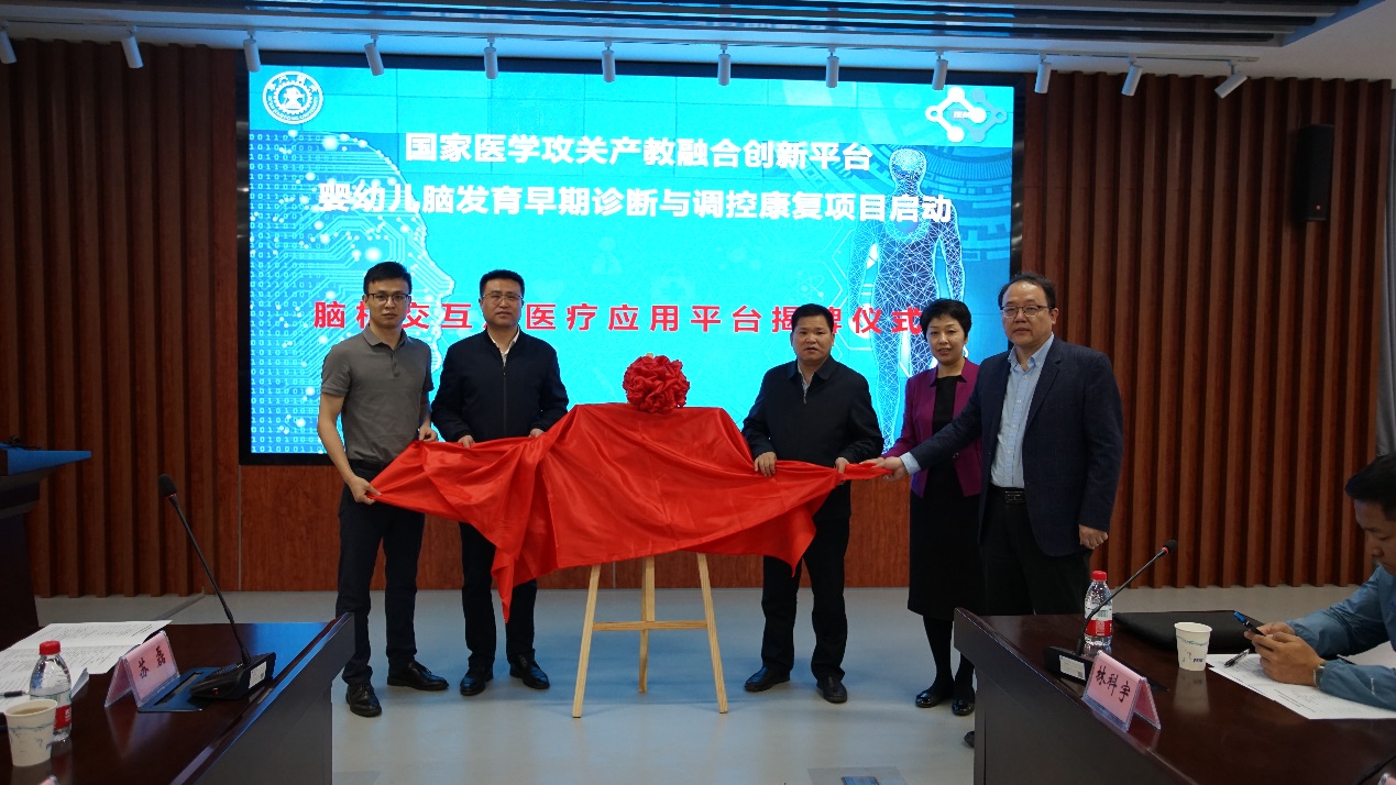 国家医学攻关产教融合创新平台-婴幼儿脑发育早期诊断与调控康复攻关技术任务启动由西安交通大学科研院基地与成果处副处长种道彤主持,校长助理黄忠德代表交大进行主题讲话;沣西新城创新港管理服务部部长吴辛愚、西安市儿童医院副院长陈艳妮和上海傅利叶智能科技有限公司副总经理钟雪岗代表地方与合作单位致辞,攻关任务负责人西安交通大学徐光华教授进行了平台建设方案汇报。随后,黄忠德、吴辛愚、陈艳妮、钟雪岗和徐光华共同参与了医学攻关脑机交互及医疗应用平台的揭牌仪式。与会嘉宾包括中国科学院上海微系统与信息技术研究所副所长陶虎、中山大学教授赖剑煌、沣西新城创新港管理服务部副部长胡伟、南昌航天科技集团有限公司董事长邱震钰以及10多位论坛报告专家等。