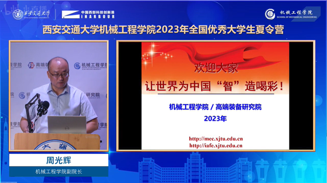 周光辉副院长首先代表yl6809永利官网全体教职工对来自全国各地的优秀学子表示了热烈的欢迎,并详细介绍了yl6809永利官网的基本情况及综合实力。周院长指出,在过去的百年时光里,yl6809永利官网创造出了无数个令人瞩目的辉煌时刻,培养了以人民科学家钱学森为代表的20多位两院院士以及数以万计的优秀人才,希望各位同学通过此次夏令营,更全面深入的了解机械、也欢迎大家加入西交机械人的大家庭。