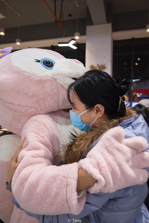 爱的抱抱游戏环节,大家纷纷与玲娜贝尔和打工蛙拥抱并合影留念,收获到了爱的祝福与温暖。