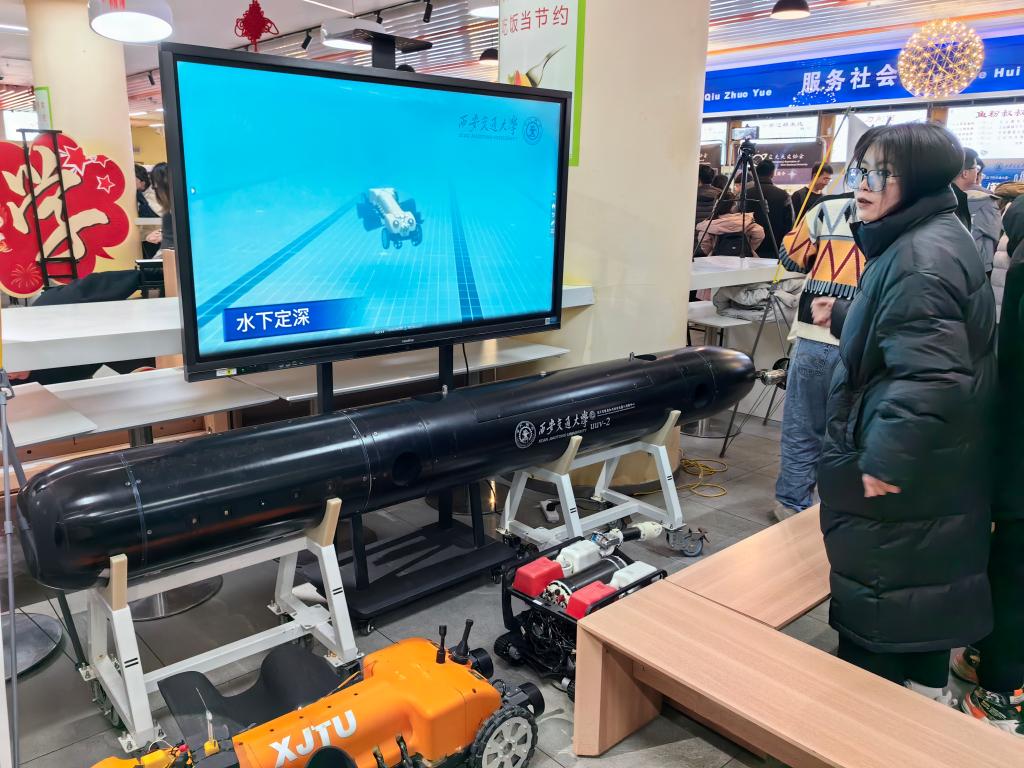 yl6809永利官网开展爱的抱抱、扭扭棒创意坊、踢毽子、书写新年心愿等游戏活动,通关游戏即可参与抽奖环节,奖品种类丰富,数量充裕。并设置水下机器人展示区,展现机械学科魅力。