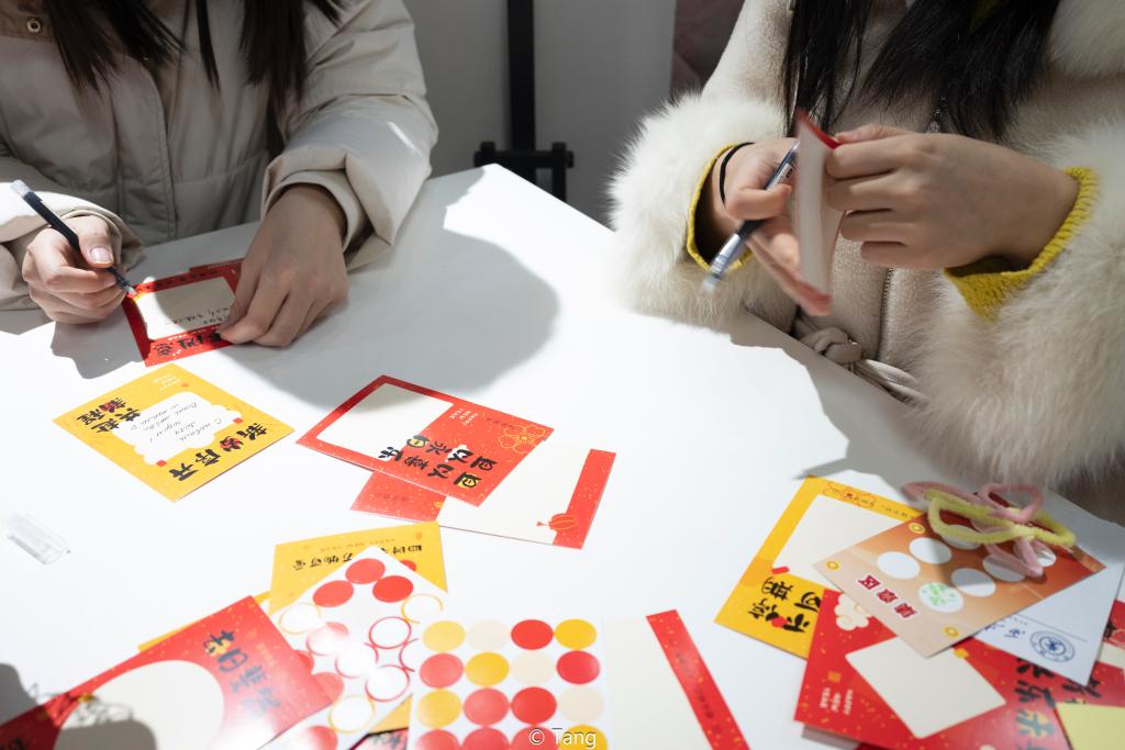 书写新年心愿区,大家在精美的新年贺卡上写上了自己新的一年美好心愿。
