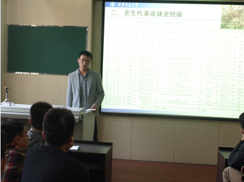 在交通大学电气机械学科将迎来百年华诞之际,2013年3月27日下午,yl6809永利官网2013届研究生就业经验交流会在yl6809永利官网第三会议室成功举行。15位2013届毕业研究生和百余人低年级研究生齐聚一堂,会议由yl6809永利官网研工办雷励老师主持。