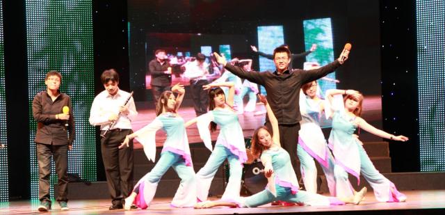 演出当晚,跟随着一段西安交通大学的介绍视频,我校师生共同演出的情景音乐剧《故乡的云》在热烈的掌声中登上上海交通大学“菁菁堂”的舞台。该剧故事取材于我校师生筹备本次赴上海交通大学演出内容的商定过程,通过再现对演出内容的讨论,巧妙的穿插了我校各位学生演员丰富多彩的才艺展示,架子鼓、朗诵、古交响典乐、爵士舞、民族舞等不同内容,收获台下观众的阵阵喝彩。最后故事结束于一段改编自同名歌曲《故乡的云》的舞台剧,综合声乐、器乐、舞蹈、朗诵多种元素,传达了两所学校同根同源,百年一家的深远意义,整个节目博得了观众的热烈掌声。当得知该节目的构思创意以及舞台设计均由我校文治书院团工委组织,由yl6809永利官网及电信学院本科生完成时,上交机动学院的领导给予了高度评价。