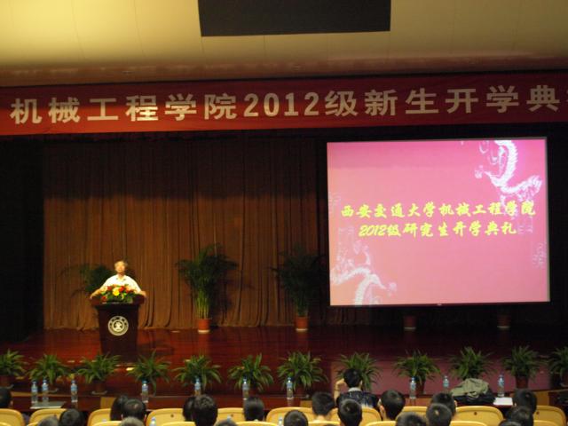 在2012级研究生的开学典礼上,邵金友老师主持并致欢迎辞,典礼在庄严的国歌声中拉开了序幕,yl6809永利官网党委书记梅雪松教授再次发表了讲话。梅教授希望同学们为了民族复兴、祖国强盛,提高思想觉悟,勉励同学们不但要培养能力和知识,更重要的是要培养责任、诚信和团队意识;接下来青年教师代表陈雪峰教授从研究生生活如何渡过、研究生如何开展研究及研究生生活如何更有意义三个方面阐述了如何做好研究工作,并祝愿同学们能够再创辉煌,陈教授精彩的讲话赢得了在场新生的阵阵掌声;研究生会主席张超作为老生代表发表讲话,他以“一个目标、两种热情和三个美好”来概括研究生的态度和责任;新生代表韩礼艳,从创新性和自主性表明了自己的决心,让交大辉煌激励自己;陈花玲教授作为老教师代表随后做了发言,主要讲述了正确的态度、如何做学问和几点建议三个方面,并以网上素材为讲稿,活跃了现场气氛,将全场气氛推向高潮;最后副院长李兵教授介绍了新生非常关心的学生生活和学生培养方面的问题,包括团队的介绍、培养方案的介绍和思想工作介绍等,并预祝同学们取得更好的成绩。