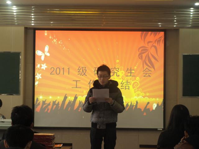 会议由本届研究生会秘书长王佳同学主持。会上,訾艳阳教授做了讲话。他首先对yl6809永利官网研究生会近两个多月的工作做出了充分肯定,对个人以及集体在学校学院活动中所表现出的工作热情提出表扬。特别是在“中华之声”合唱比赛中,同学们所表现出的耐心、热心、激情及凝聚力深深地令他感动。随后,訾老师对合唱比赛的经验教训做出了总结。同时强调同学们一定要重视课业,努力学习,为科研做出贡献。