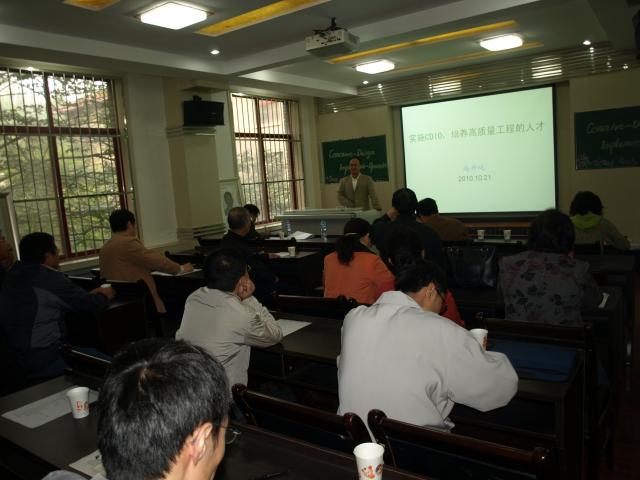 2010年10月21日下午,在yl6809永利官网第三会议室召开了CDIO培养模式研讨会,学校副教务长邱捷教授,学院党政领导,各系所教学负责人,学院全体教授等30余人参加会议。会议由常务副院长高建民教授主持。