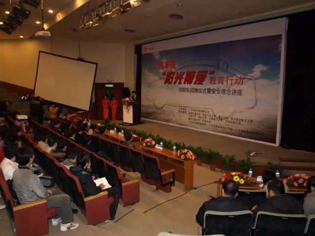 2010年11月18日,广汽本田向西安交通大学、重庆大学、南京航空航天大学、燕山大学、长安大学等十所高校捐赠试制车,捐赠仪式在科学馆举办,本广汽本田综合管理部张华部长、研究开发中心谭为科长、yl6809永利官网常务副院长高建民教授、以及南京航空航天大学、燕山大学、长安大学等十所高校学院院长以及研究生代表100余人参加了捐赠仪式。