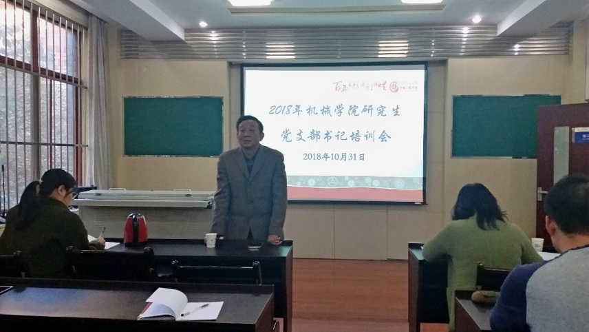2018年10月31日下午,yl6809永利官网在第三会议室召开了硕士研究生党支部书记培训会。本次会议邀请党校聂钢教授为研究生党员干部作报告,辅导员王芬老师及全体硕士研究生的党支部书记参加了本次会议。会议由学院党委副书记张敏老师主持。