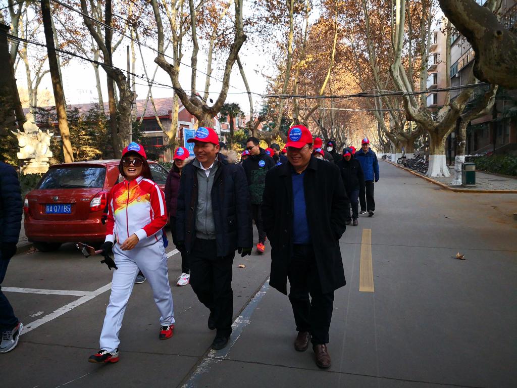 在学院工会文体委员戚社苗老师的带领下,健步走活动拉开帷幕。参加队员自学院西二楼门口出发,经梧桐西道、文治路、思源活动中心、四大文明广场、梧桐东道、彭康路,最后到学院职工小家,并以此路线完成了第二圈健步走,行程约3500米。