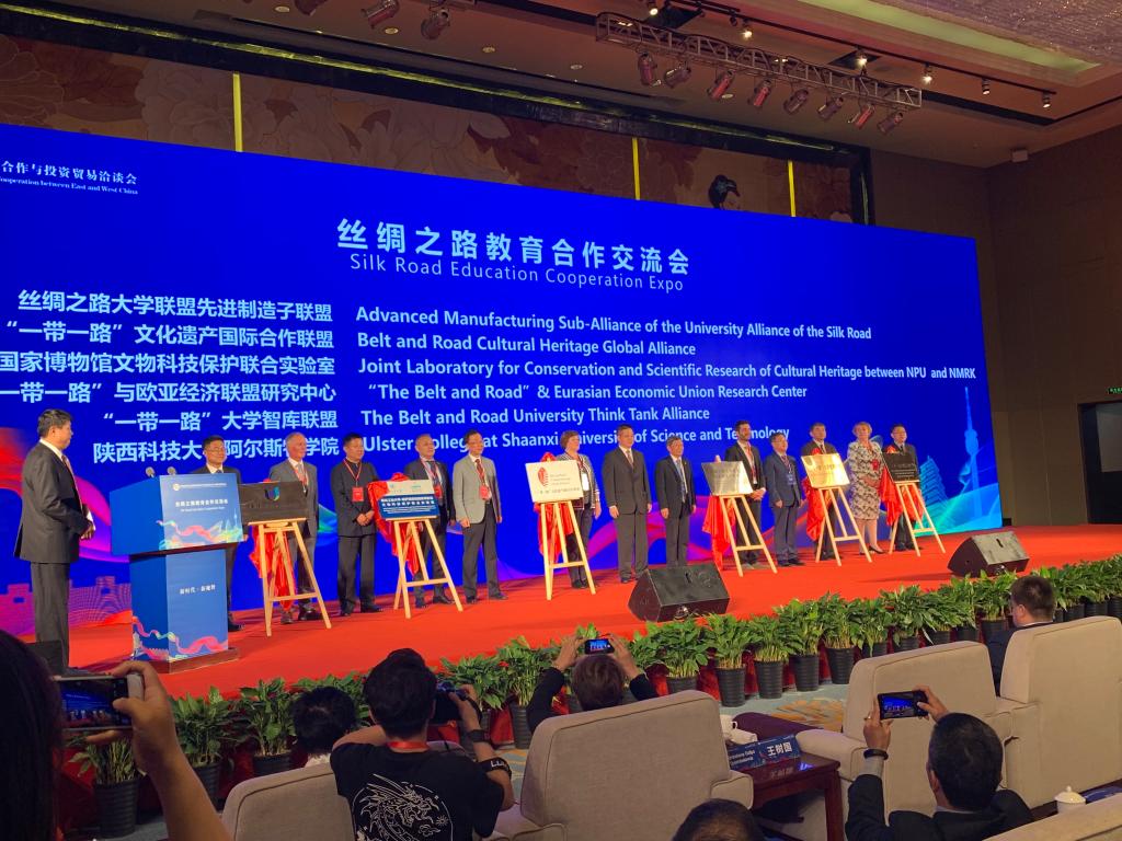 11日,作为2019丝绸之路教育合作交流会开幕式活动之一,方光华副省长、西安交通大学校长王树国、先进制造子联盟国外高校代表法国国立路桥大学劳兰特.麦克迪杉教授(Laurent Maghdissian)共同为“丝绸之路大学联盟先进制造子联盟”揭牌。