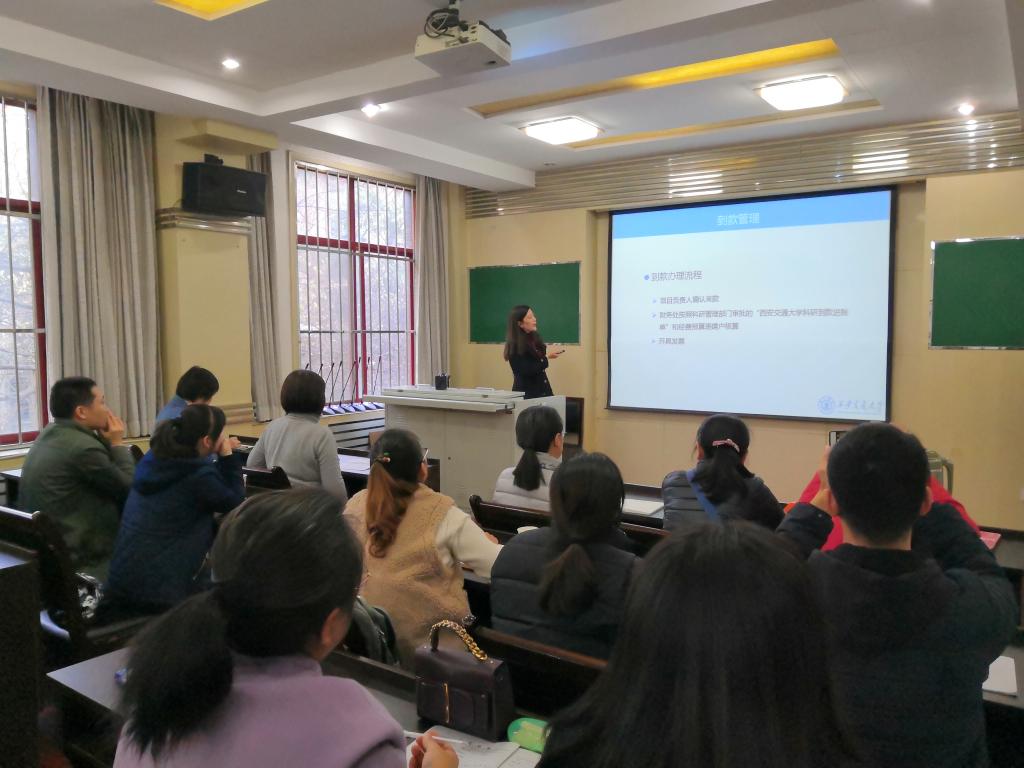 财务处科研经费管理中心主管曾薇伟从自然科学科研经费管理和科研经费财务审计验收中关注的问题两个方面给师生们讲解了最新的科研经费管理政策。讲解内容涵盖到款管理、科研系统与财务系统对接、预借发票管理、自然科学科研经费的支出管理、预算编制及调整、决算审计验收、项目结题等科研经费管理的全过程。