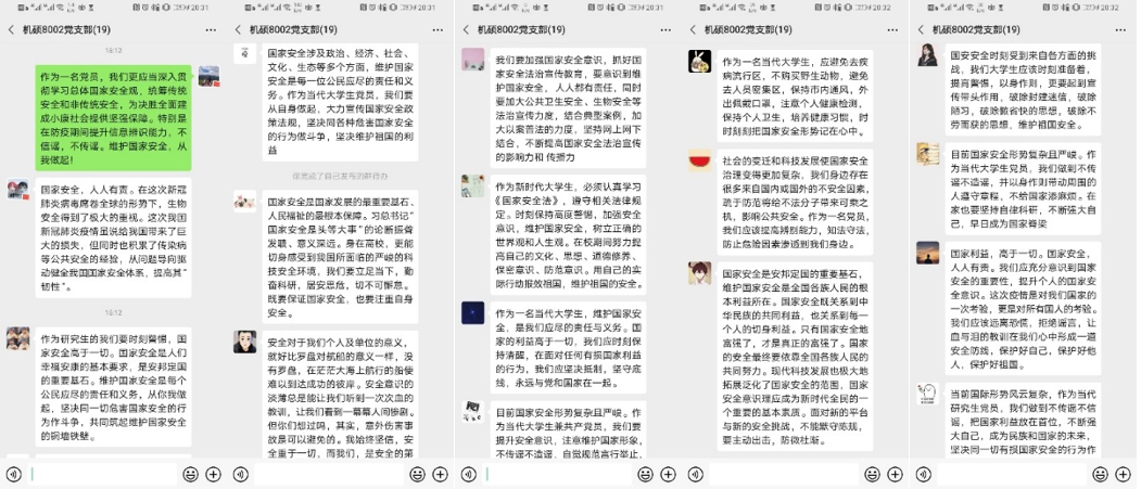 2020年4月15日下午14:00,硕8002党支部通过腾讯会议及微信群开展了主题为“同上一堂国家安全教育课”的线上党组织生活会,会议由党支部书记雷子豪主持。会议首先认真学习了近几年来习近平总书记围绕总体国家安全观发表的一系列重要论述。理论学习之后支部同志共同收看了清华大学公共安全研究院范维澄院士讲授的高校公开课“总体国家安全观视角下的疫情防控”。在公开课之后的交流讨论中,来自湖北襄阳的李小龙同志表示:“在这次新冠肺炎病毒席卷全球的形势下,生物安全得到了极大的重视。这次我国新冠肺炎疫情虽说给我国带来了巨大的损失,但同时也积累了传染病等公共安全的经验,从问题导向驱动健全我国国家安全体系,提高其‘韧性’”。