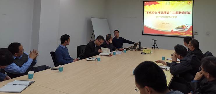 11月21日晚上,科研院专项与开发处李小虎副处长走进yl6809永利官网设计所党支部“不忘初心、牢记使命”主题教育活动现场,并开讲党课。yl6809永利官网邵金友副院长莅临指导学习。活动由设计所党支部董光能书记主持。